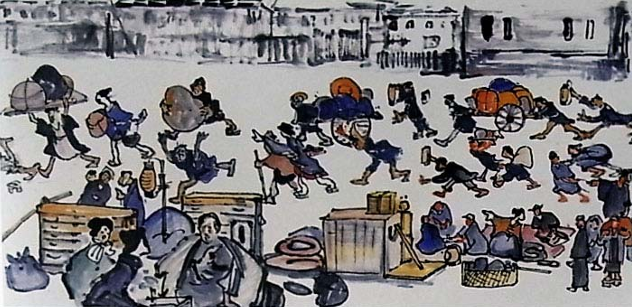 出典 災害史に学ぶ 1914年1月12日午前11時の噴煙(鹿児島県立博物館蔵) 避難