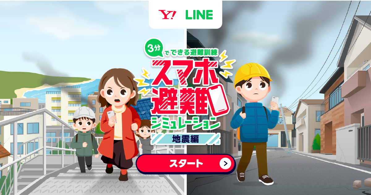 出典 Y! LINE|3分でできる避難訓練 スマホ避難シミュレーション(地震編)